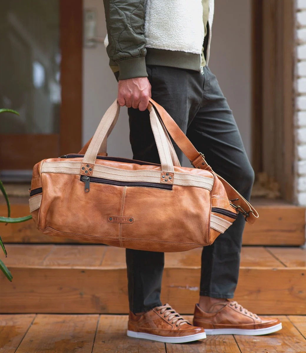Designed with the traveler in mind, the Ruslan Leather Duffel is the perfect size for air travel, weekend getaways or the daily gym grind. Durable canvas straps carry this beautiful leather duffel, with plenty of room for all your necessities. Three outer zip pockets make finding everything quick and simple, and the zip main compartment is lined with organic cotton, with two slip pockets and one zippered pocket inside.