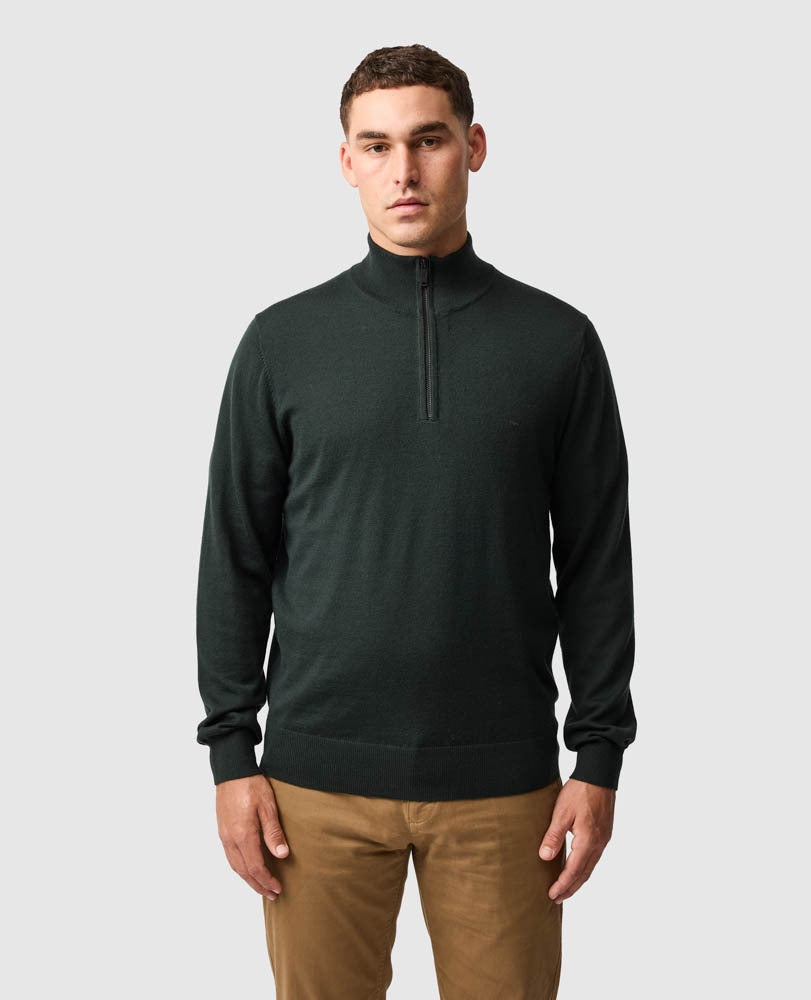 Nobles Knit - Merino Wool 1/4 Zip - Forest
