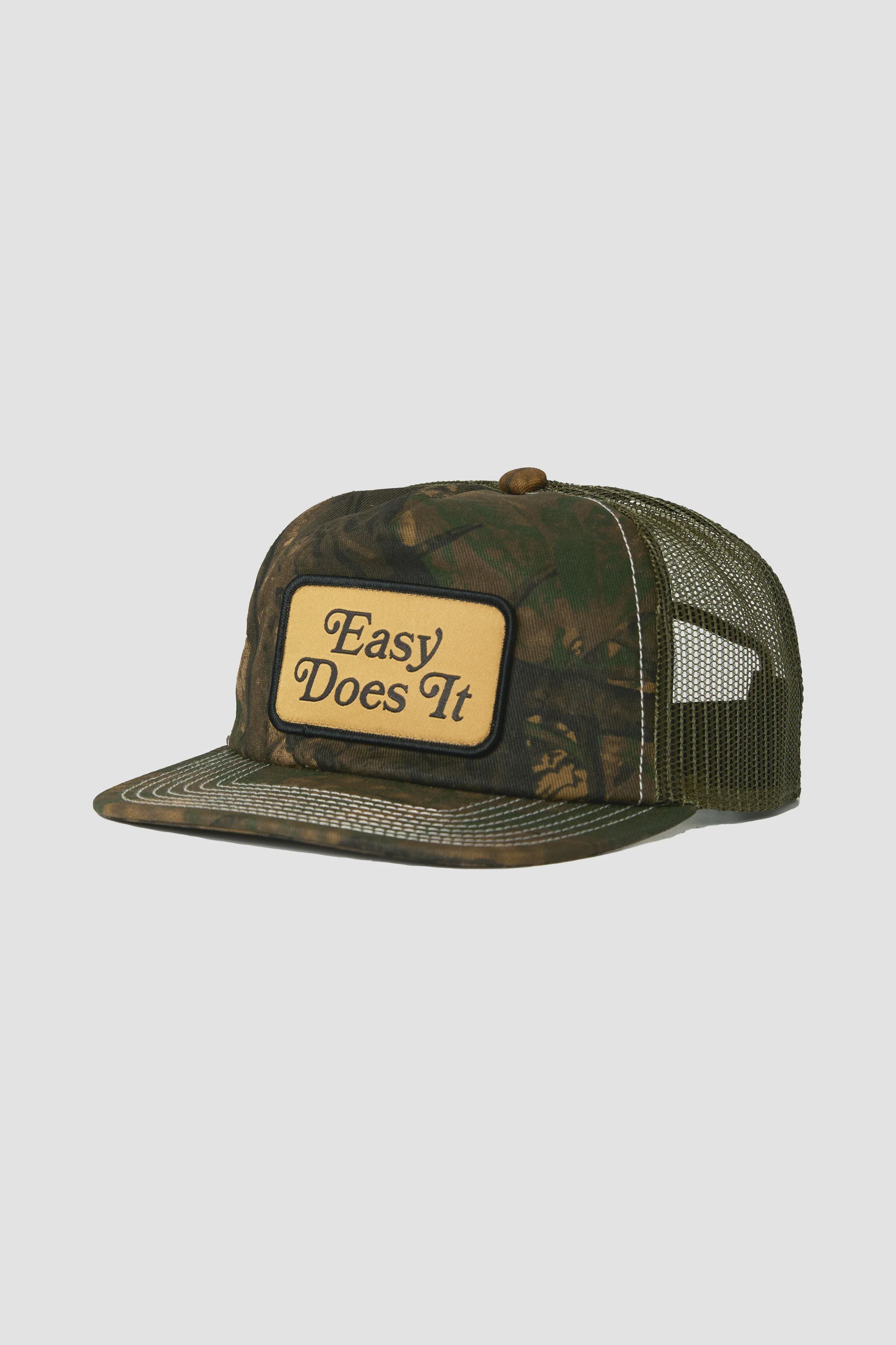 The Good Times Trucker Hat is made from cotton twill and polyester mesh and features a Katin "Easy Does It" patch.