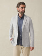 Faherty's definitive sport coat leads with big-time comfort but is finished with top-shelf craftsmanship. The ultimate travel companion, it's easy to care for, making it the perfect piece to throw into your carry-on or wear right off the plane and into the boardroom. Elevated yet unstructured, the signature loopback knit fabric is ridiculously soft, and stretchy, while still retaining its shape. Meet the blazer especially made for guys who don't wear blazers.