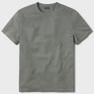 A heavy weight 9.5 oz cotton tee, pigment dyed and washed and pre-shrunk for a soft finish. Model is 6’3” and 195 lbs, wearing a size large.